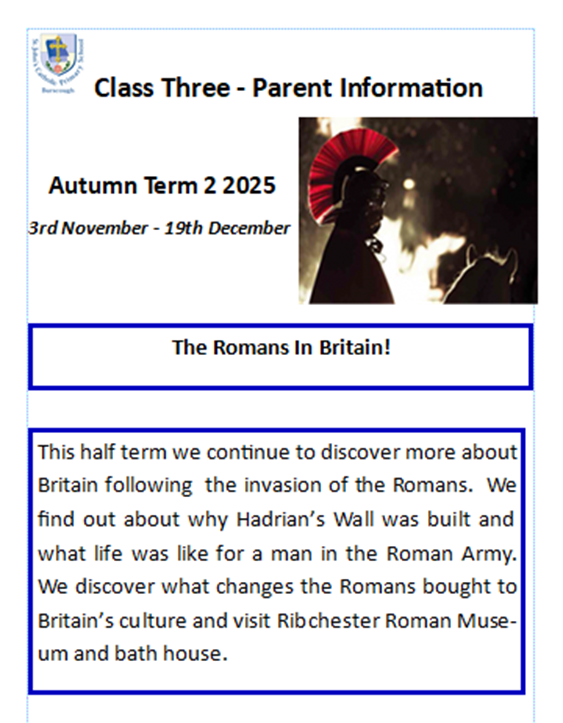 A huge ‘Thank you!’ to all of Class Three for making our first half term of this year so enjoyable, we have already had lots of fun and learnt so much! Thank you to everyone who came to see me on Parent’s Evening, it was lovely to see so many of you and celebrate the hard work and progress all the children are making. We continue with our main class topic, ‘The Romans in Britain!’ until Christmas and we will be finding out all about Electricity in our Science lessons. Please see the more detailed Curriculum map for more detail and take a look at the new topic homework suggestions! I am delighted with all the FANTASTIC work that has come in from last half term; our display looks brilliant. Well done to all the children who earned a certificate!