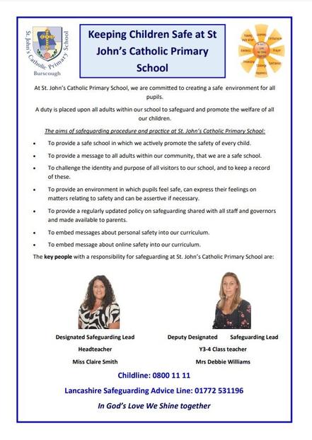 Nominated members of staff, known as a Key Adults, have been trained to liaise with the police. At St John's, our Key Adults are our Designated Safeguarding Leads: Claire Smith and Debbie Williams. They will be able to use information that has been shared with them, in confidence, to ensure that the school makes provision for possible difficulties experienced by children or their families. The Key Adults will keep this information confidential and will only share it on a need-to-know basis, for instance, to teaching staff of the child. It will not be shared with other staff or school pupils.